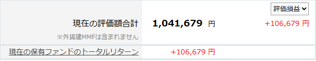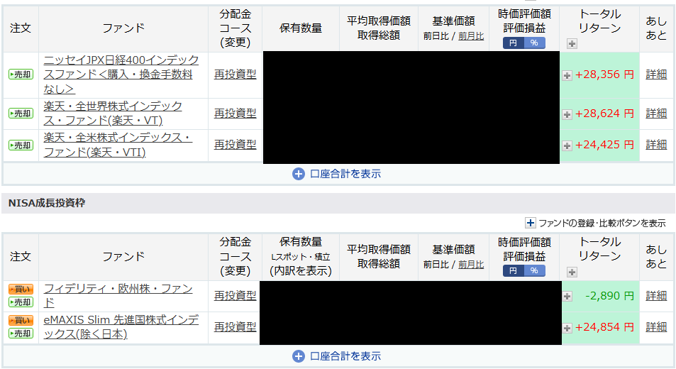 こちらが今の私の投資信託の状況です。証券会社は楽天を使用しています。
